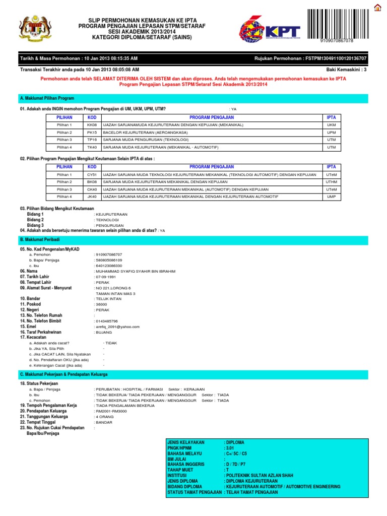 Yang benar, noorihan ali yusoff ketua seksyen kemasukan dan rekod b.p timbalan naib canselor (akademik & antarabangsa) surat tawaran ini adalah cetakan komputer dan tidak memerlukan tandatangan. Permohonan kemasukan um adalah dibuka dari 2 disember 2019 jam 1200 tengahari sehingga 8 disember 2019 jam 0500 petang. Um ketua penolong pendaftar kanan seksyen kemasukan & rekod3. Perintah am bab a, b, c, d, e, f dan g— transcript presentasi 4 syarat am lantikan warganegara untuk lantikan tetap umur tidak kurang daripada 18 tahun pegawai berhenti/dibuang kerja permohonan dari pegawai sedang berkhidmat. Harini misilin nak share maksud singkatan kat rekod kesihatan anak supaya senang korang nak isi borang pendaftaran nanti. Aku anak ke 3 dari 4 bersaudara dan semua perempuan. Semua maklumat untuk memohon masuk tentera sebagai pegawai. Sangat proporsional antara tinggi dan berat badanku. Unit kemasukan dan rekod pelajar, bahagian pengurusan akademik, jabatan. 3, bangunan kwsp, jalan bukit lagi, 01000 kangar perlis. Seksyen kemasukan rekod can be abbreviated as skr. Kami punya fitur baru untuk anda, ayo gunakan dan dapatkan manfaatnya untuk kesehatan anda. Ia berpikir dan punya akal.